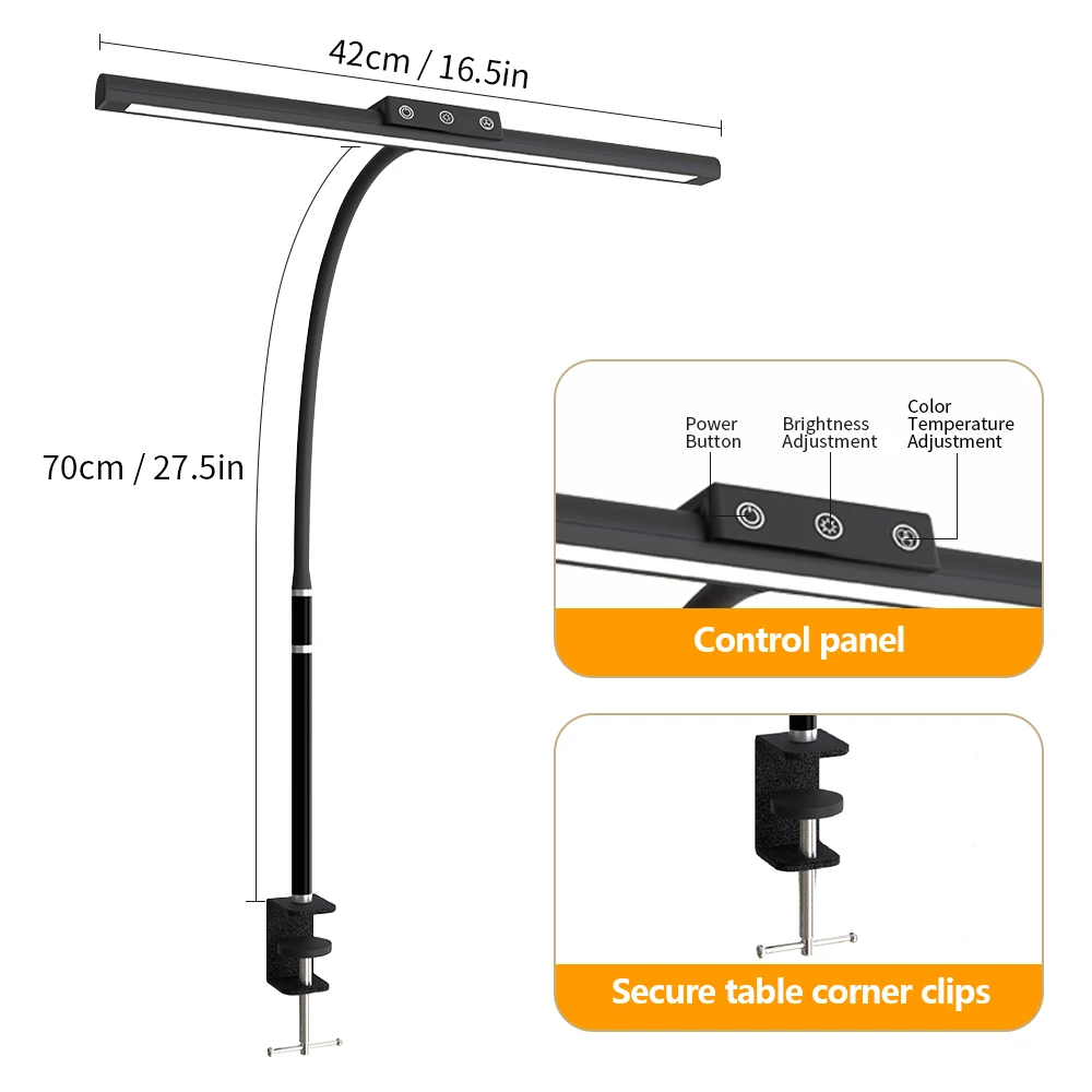 10W LED Desk Lamp for Office Home Eye-Caring Clamp USB Desk Lamp with 5 Color Stepless Dimming Flexible Gooseneck Touch Control